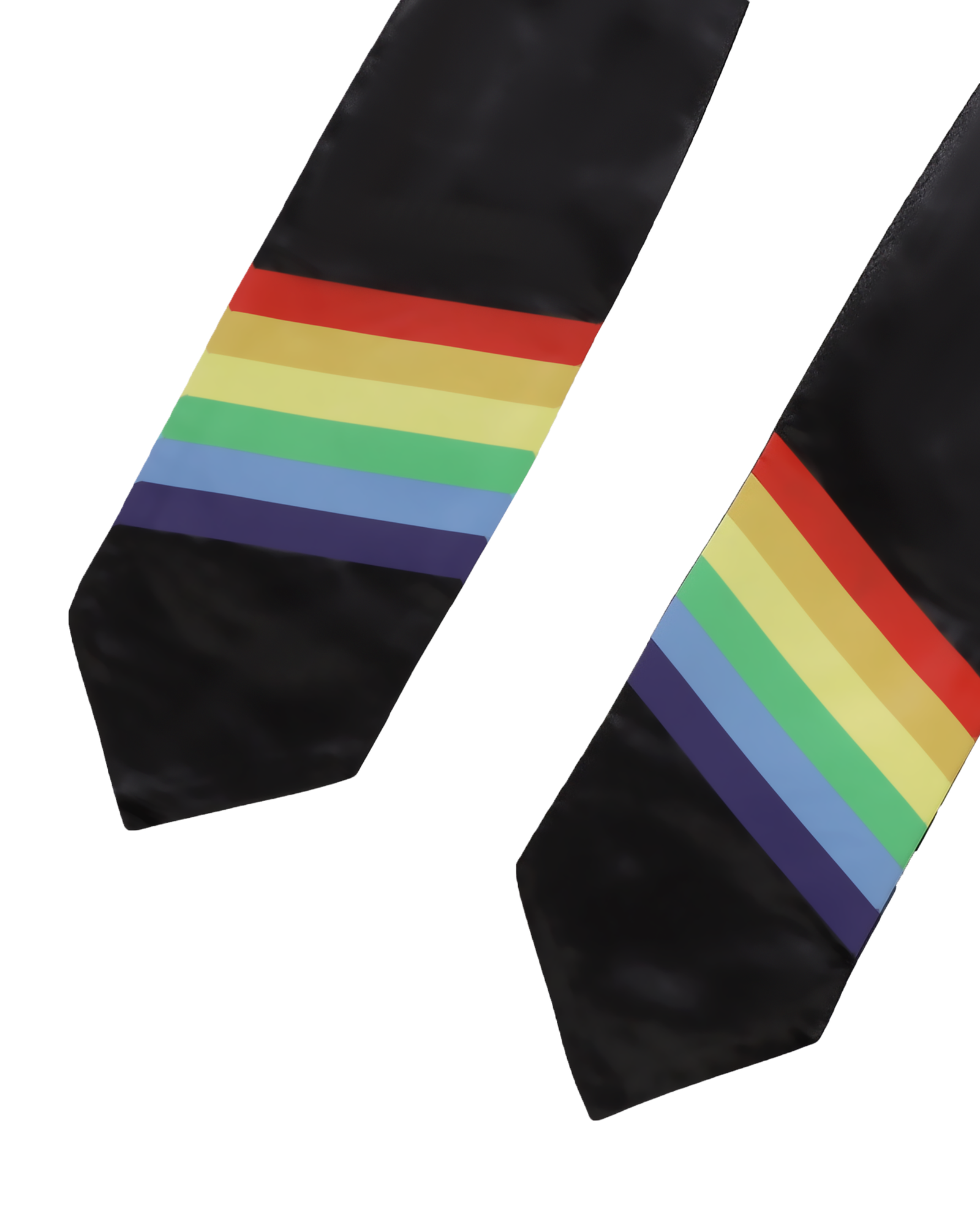 • Design: This graduation honor stole features a rainbow color scheme, symbolizing the diversity and inclusivity of the LGBTQ+ community, it has a convenient neck design so you can wear it easily, with arrow points at the end of each side. You can customize it with lettering and organization logos