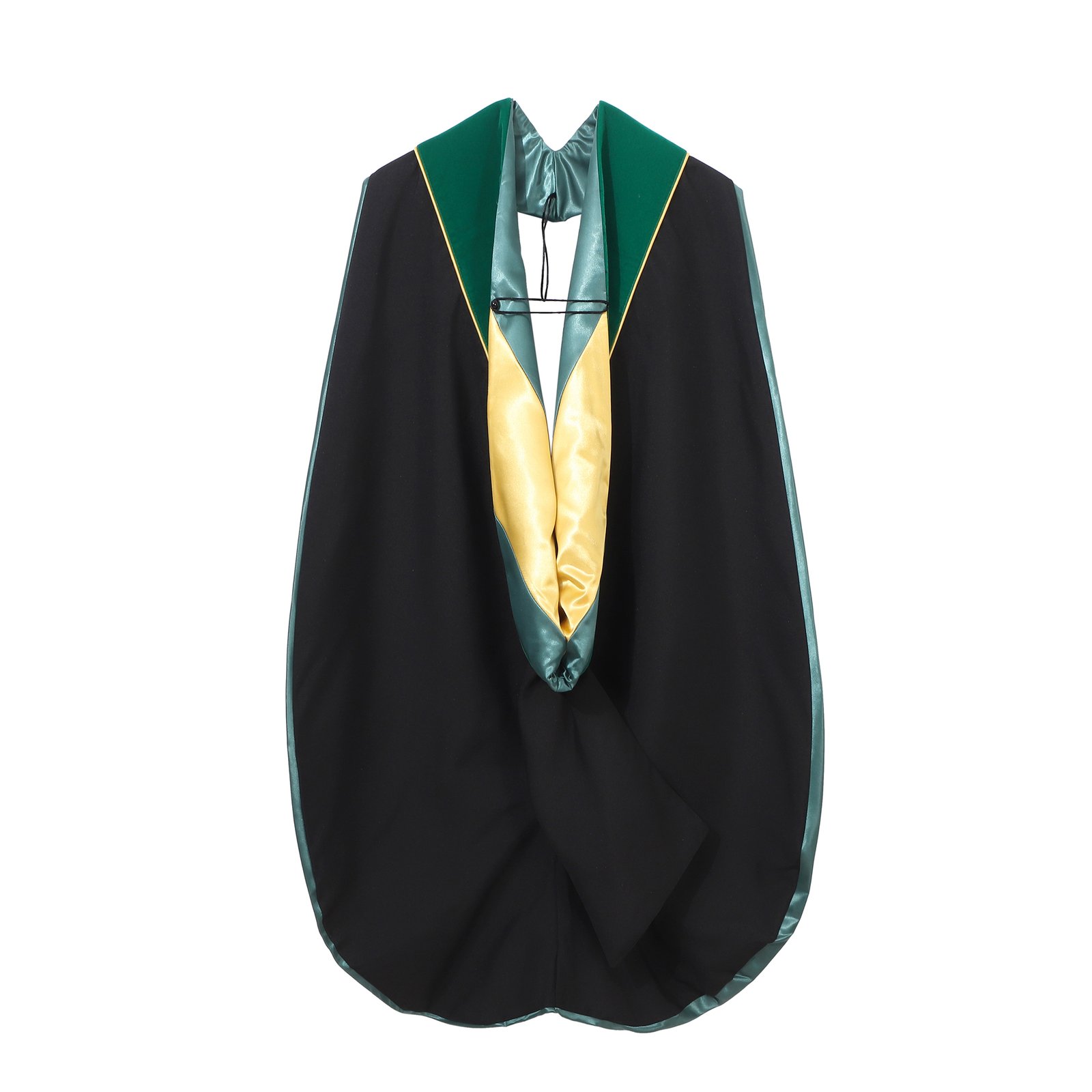 Gradwow Deluxe Unisex Doctoral Hood with Gold Piping Emerald Green/Forest Green/Gold