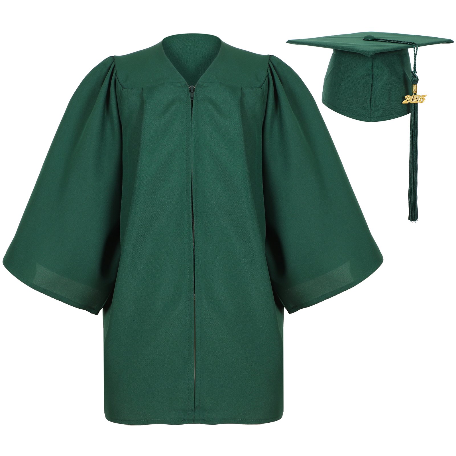 Matte Kindergarten Preschool Graduation Gown and Cap Set with Year Tassel Forest Green