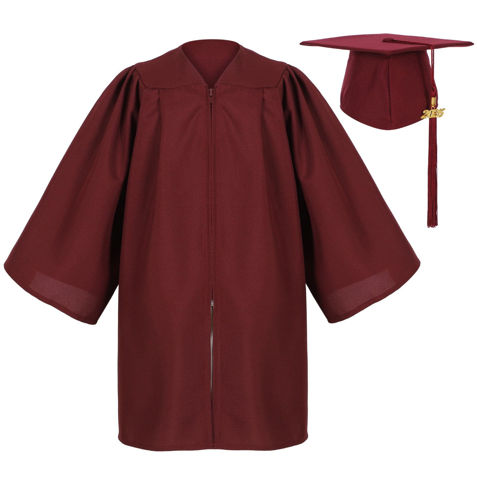 Matte Kindergarten Preschool Graduation Gown and Cap Set with Year Tassel Maroon