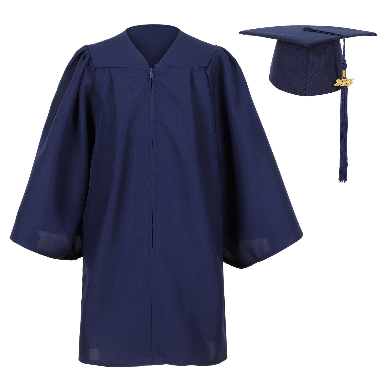 Matte Kindergarten Preschool Graduation Gown and Cap Set with Year Tassel Navy Blue