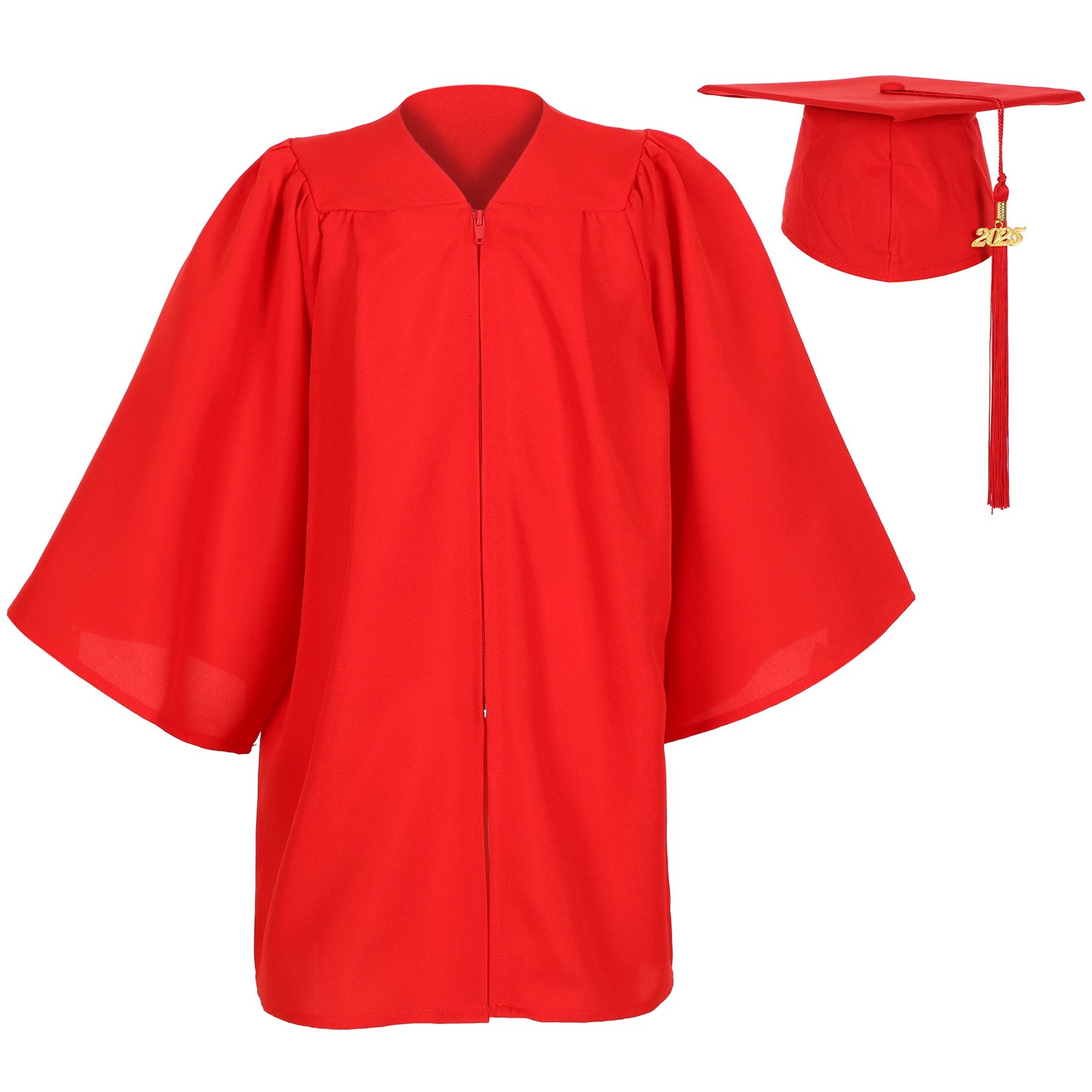 Matte Kindergarten Preschool Graduation Gown and Cap Set with Year Tassel Red