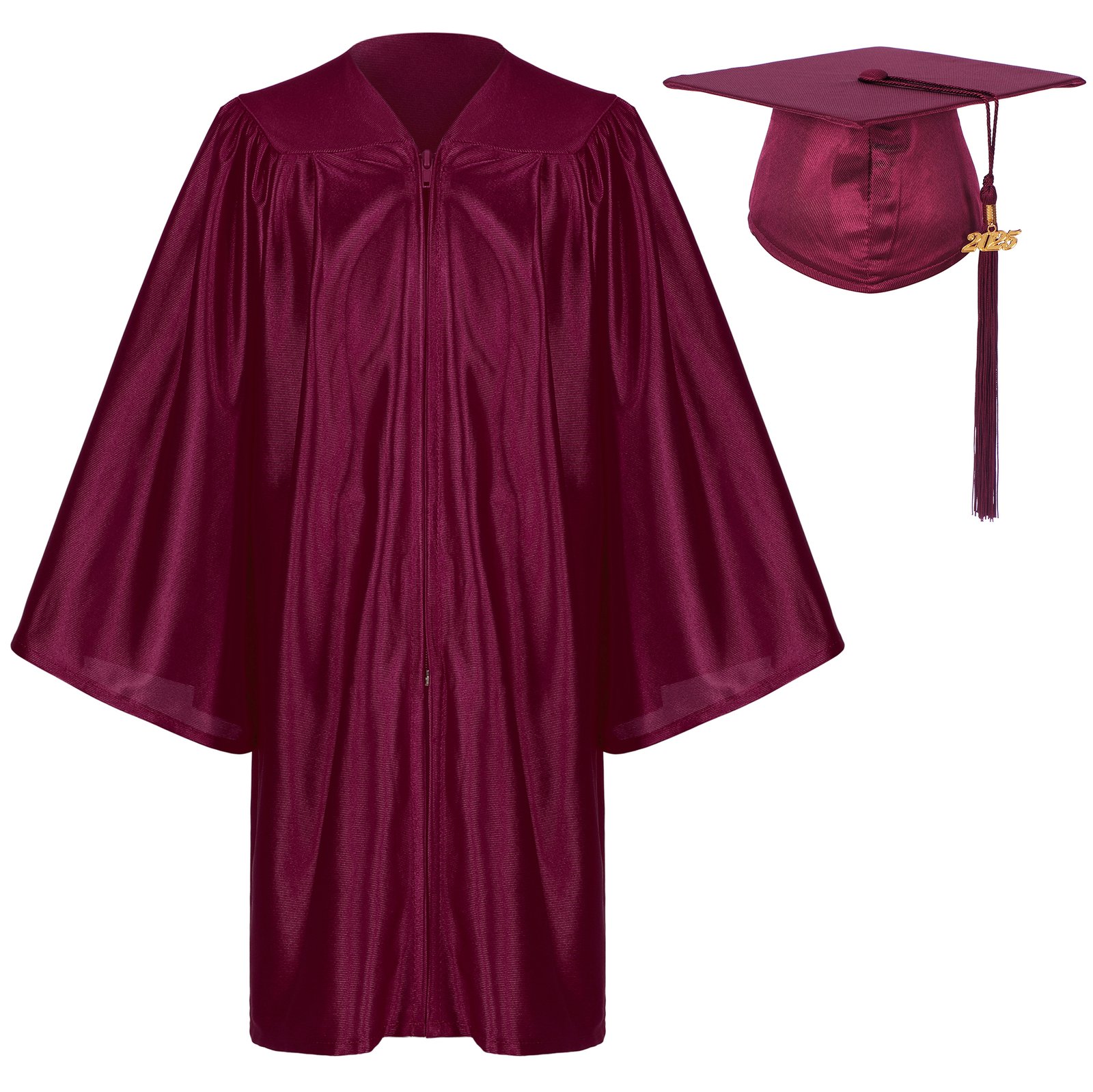 Shiny Preschool Kindergarten Graduation Cap Gown with Year Tassel Package Maroon