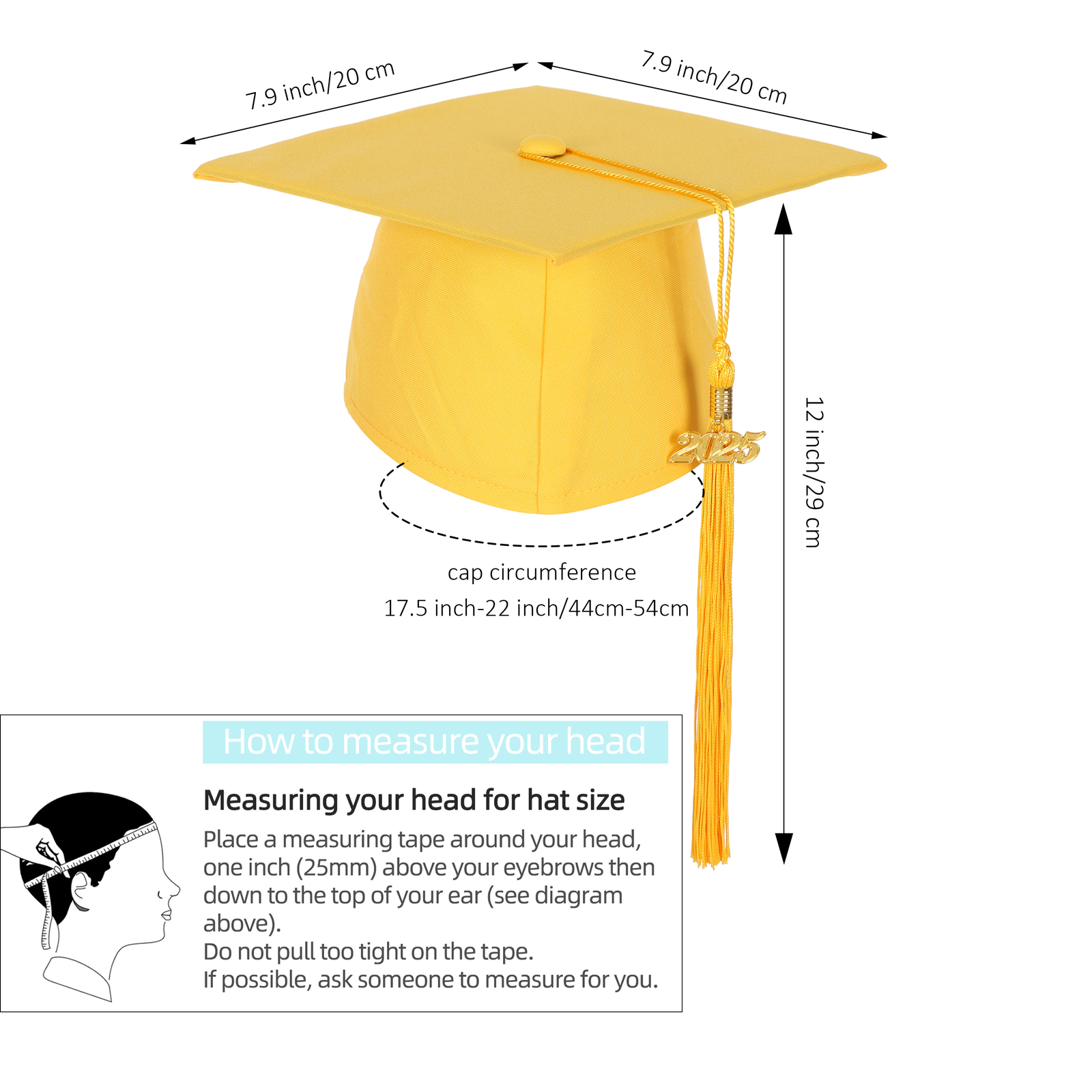 - Adjustable Fit: This cap fits many different size heads by using an adjustable elastic band in the back. Adjustable sizes 17.5”-22”, it allows for a comfortable and secure fit during the commencement procession